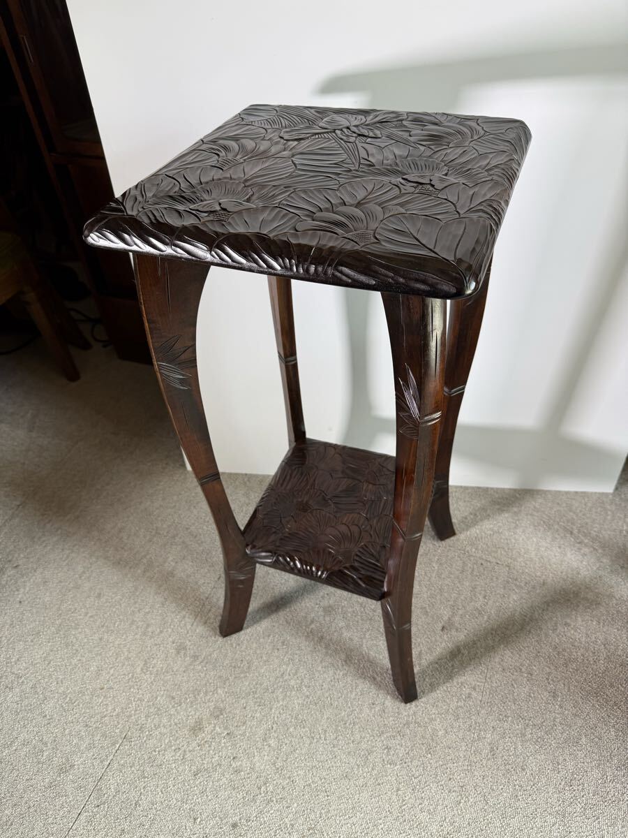- 日光彫 花台 飾り台 コンソールテーブル 木彫 牡丹文様 高級彫刻家具 伝統工芸 昭和レトロ 和モダン