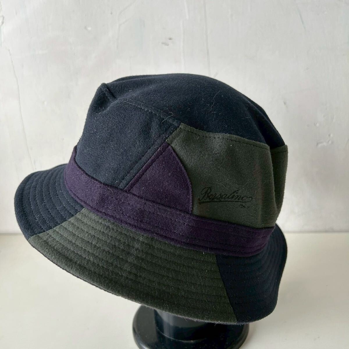- 【D】ボルサリーノBorsalino レディース ハット 帽子 3色 切替デザイン パープル カーキ ネイビー おしゃれ M 56.5cm