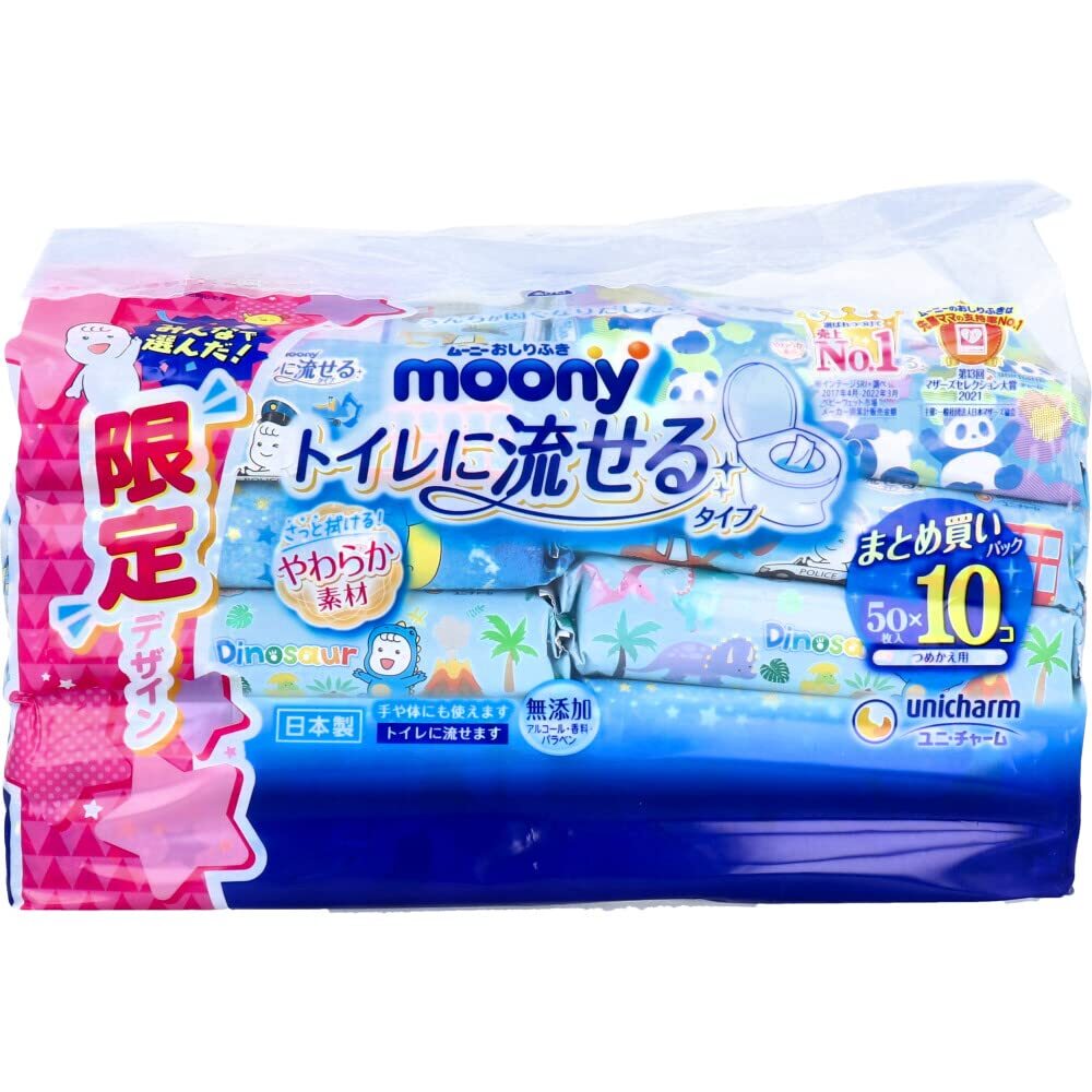 - ムーニーおしりふきトイレに流せるタイプ替50×10 容量500マイユニ・チャーム おしりふき