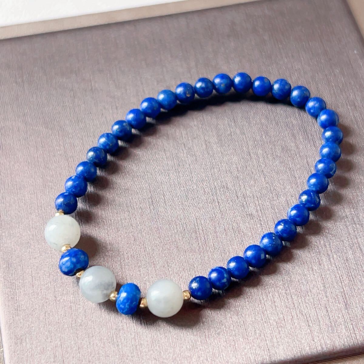 > 青金石+和田玉◇ラピスラズリ◇ブレスレット◇パワーストーン◇天然石◇巾着袋つき◇プレゼントにも010B101102