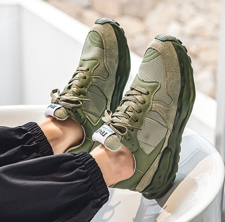 - スニーカー メンズ シューズ 靴 通勤 通学 運動靴 スポーツ カジュアル緑色 26cm