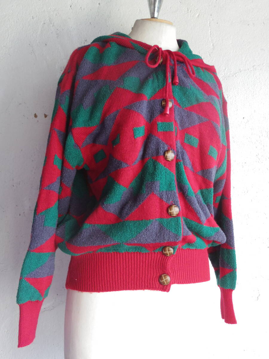 - 古着♪レトロVintage昭和レトロパーカーニット 昭和レトロ70s60s70年代60年代 昭和レトロヨーロッパモダン パーカー ニット