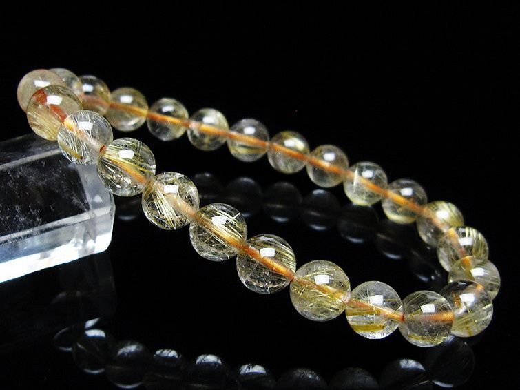 - 銀座東道◆超レア極品天然AAAゴールドタイチンルチルブレスレット 8mm [T116-12403]