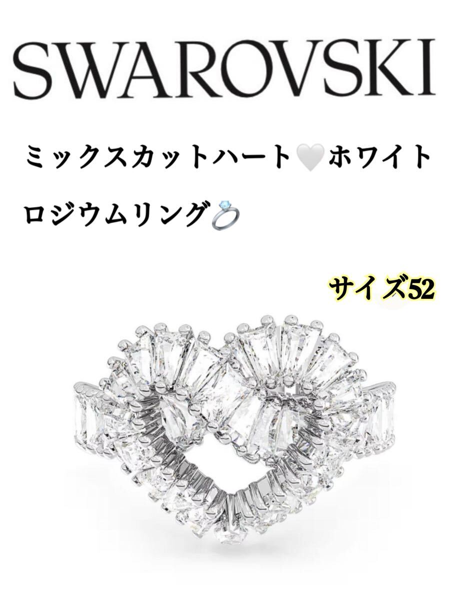 - スワロフスキーミックスカットハートホワイトロジウムリング