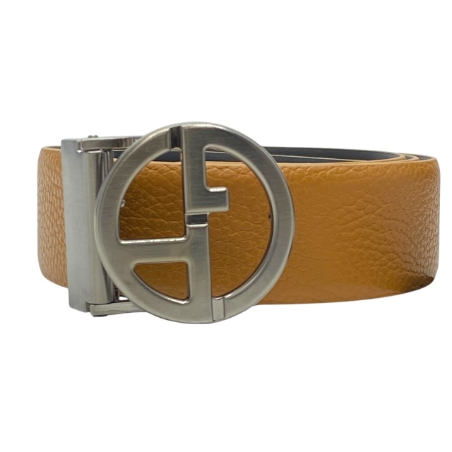 - 未使用 ジョルジオアルマーニ Y2S264 ベルト アクセサリー ロゴ バックル マットメタル金具 レザー ベージュ ブラック GIORGIO ARMANI