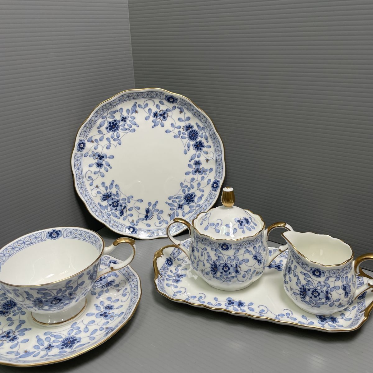 > 8r31 NARUMI ミラノセット プレート シュガーポット クリーマー カップ&ソーサー 洋食器 陶器 金縁 金彩 ナルミ カフェ 茶器 1000-スタート