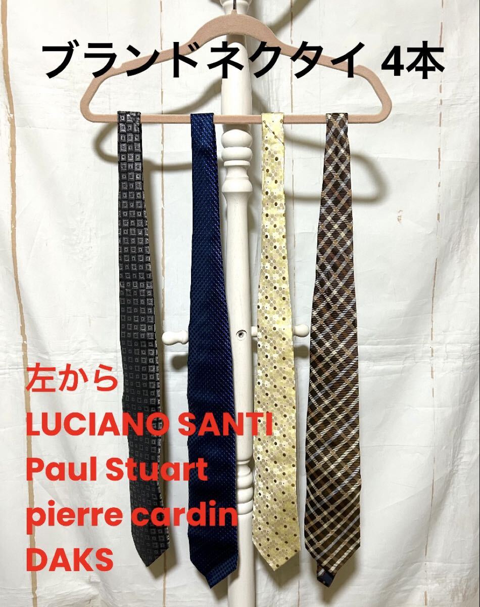 > ブランドネクタイ 4本セット Paul Stuart pierre cardin LUCIANO SANTI DAKS(used、状態きれいめ)ダークネイビー、ダークブラウン、他