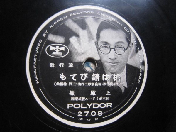 - ポリドール流行歌SP盤56★上原敏/新月手毬唄・槍は錆びても★SPレコード