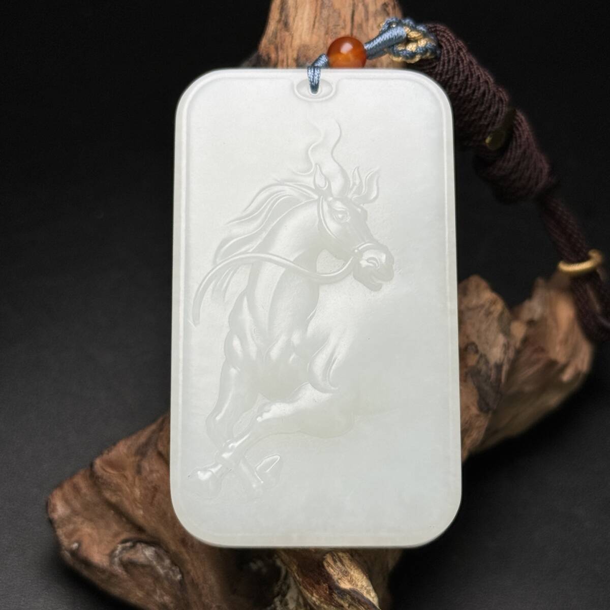 - 旧 清代 和田玉 玉牌 雕刻玉馬 天然石 時代物 中国古美術 古賞物 古置物 唐物 K710