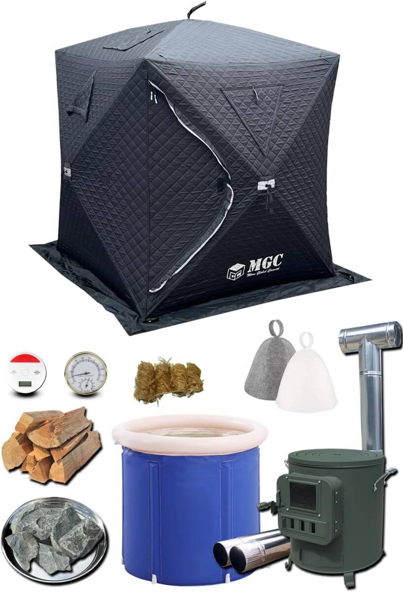 - サウナテント コンパクト 水風呂セット 4人用 ロウリュができる すぐに使える テントサウナ 外寸幅225cm×奥行225cm×高さ210cm