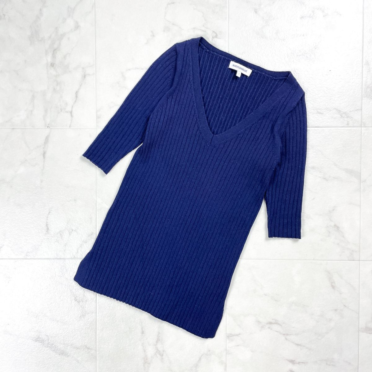 - MADISONBLUE マディソンブルー ウール混 Vネックリブニット 五分袖 トップス レディース ネイビー 紺 サイズ1*GD953