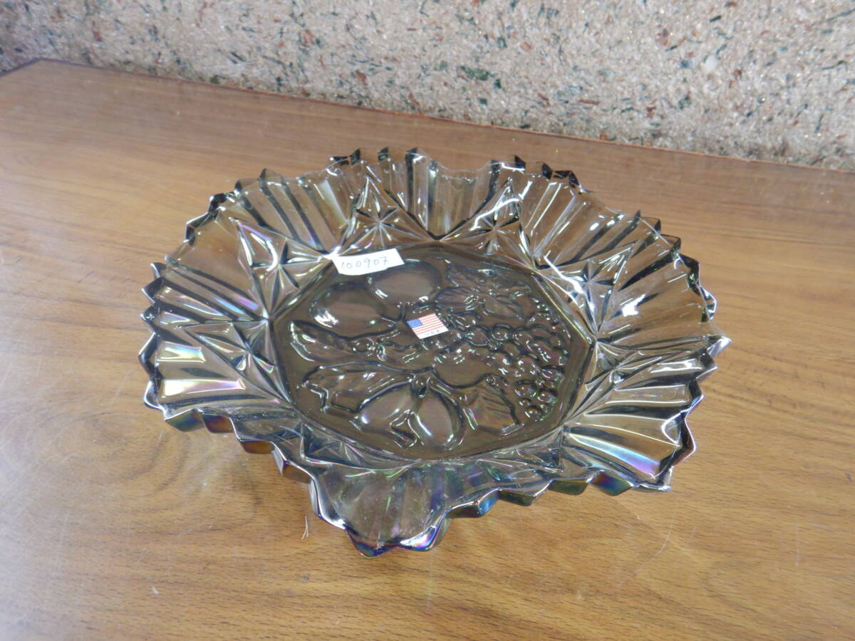 > アメリカ製 ガラス皿 ブドウ柄100907 28H5CM 未使用 MADE IN USA 裏シルバー 中皿