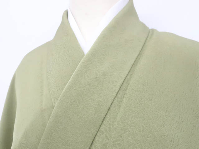 > 《京都一輝堂》リサイクル着物 色無地 一つ紋 菊地紋 正絹 身丈約161cm 裄丈約63cm 25z10-5683