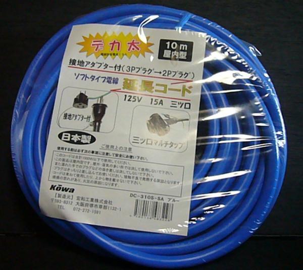 - KOWA デカ太延長コード 15A 10m 3芯 3口 DC310S ブルー