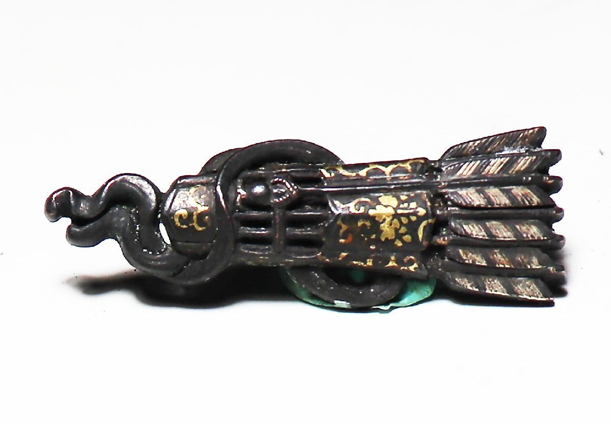 - 【桃】刀装具:金工銅地金銀象嵌弓矢箙片目貫
