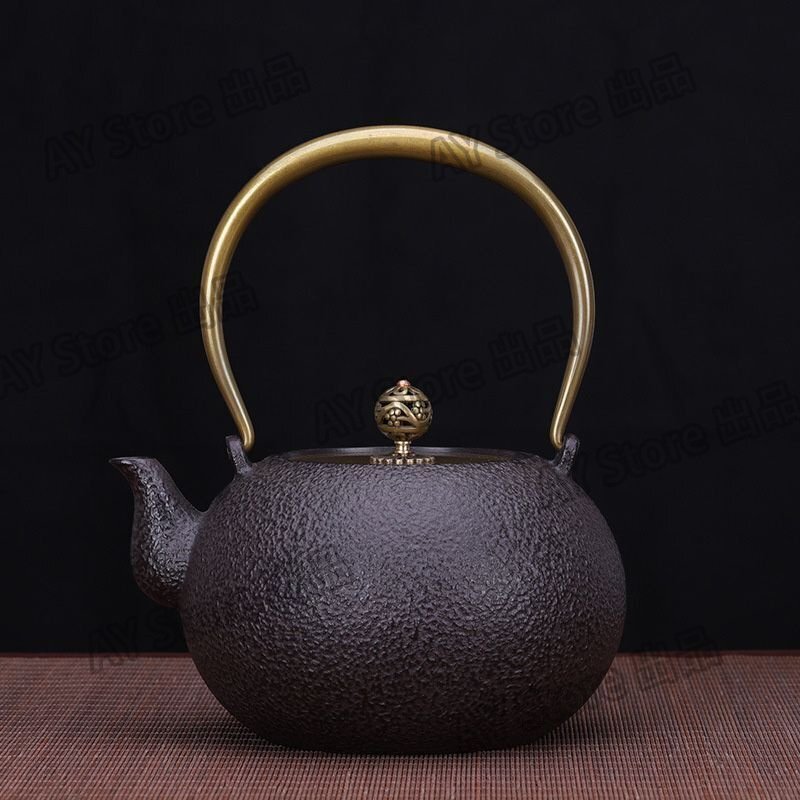 - 老鉄瓶 壺 鉄やかん 1200ml 道具 職人手作り 鉄びん 鉄分補給 急須 茶こし付き 未塗装鉄器 銅製取っ手 bhw0286