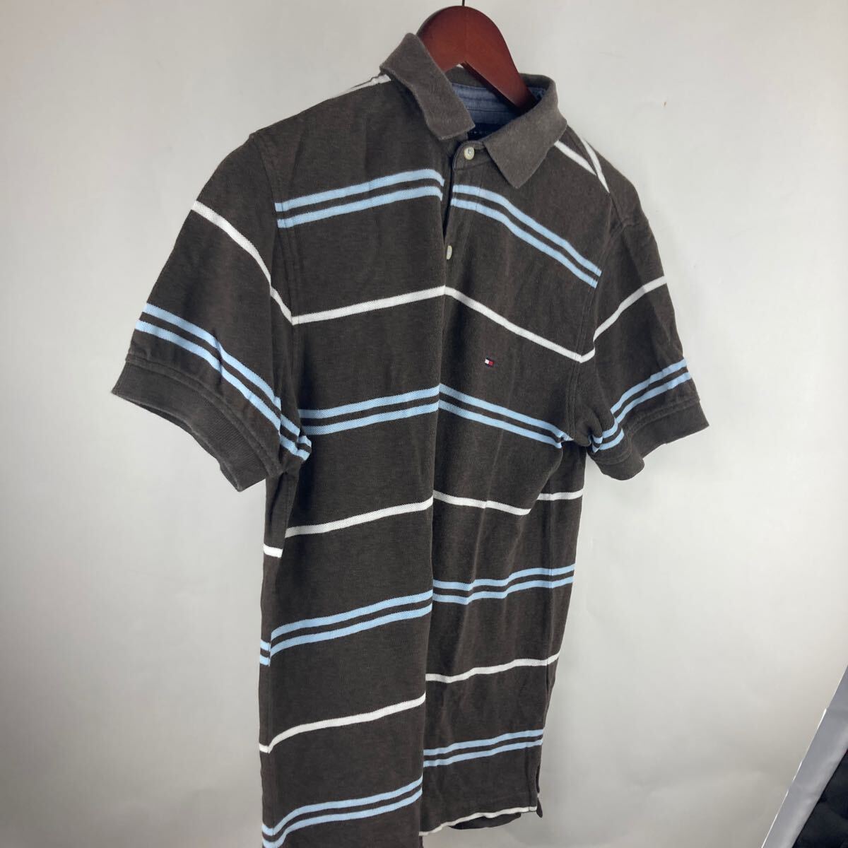 - 半袖ポロシャツ ボーダー トップス ポロシャツ 半袖シャツ ブラウン メンズ XS ストライプ 通気性 TOMMY HILFIGER トミーヒルフィガー