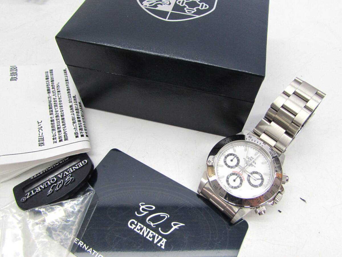 - 美品 動作品 ジュネーブ GENEVA 腕時計 クロノグラフ風 クォーツ メンズ ケース付き 余りコマあり