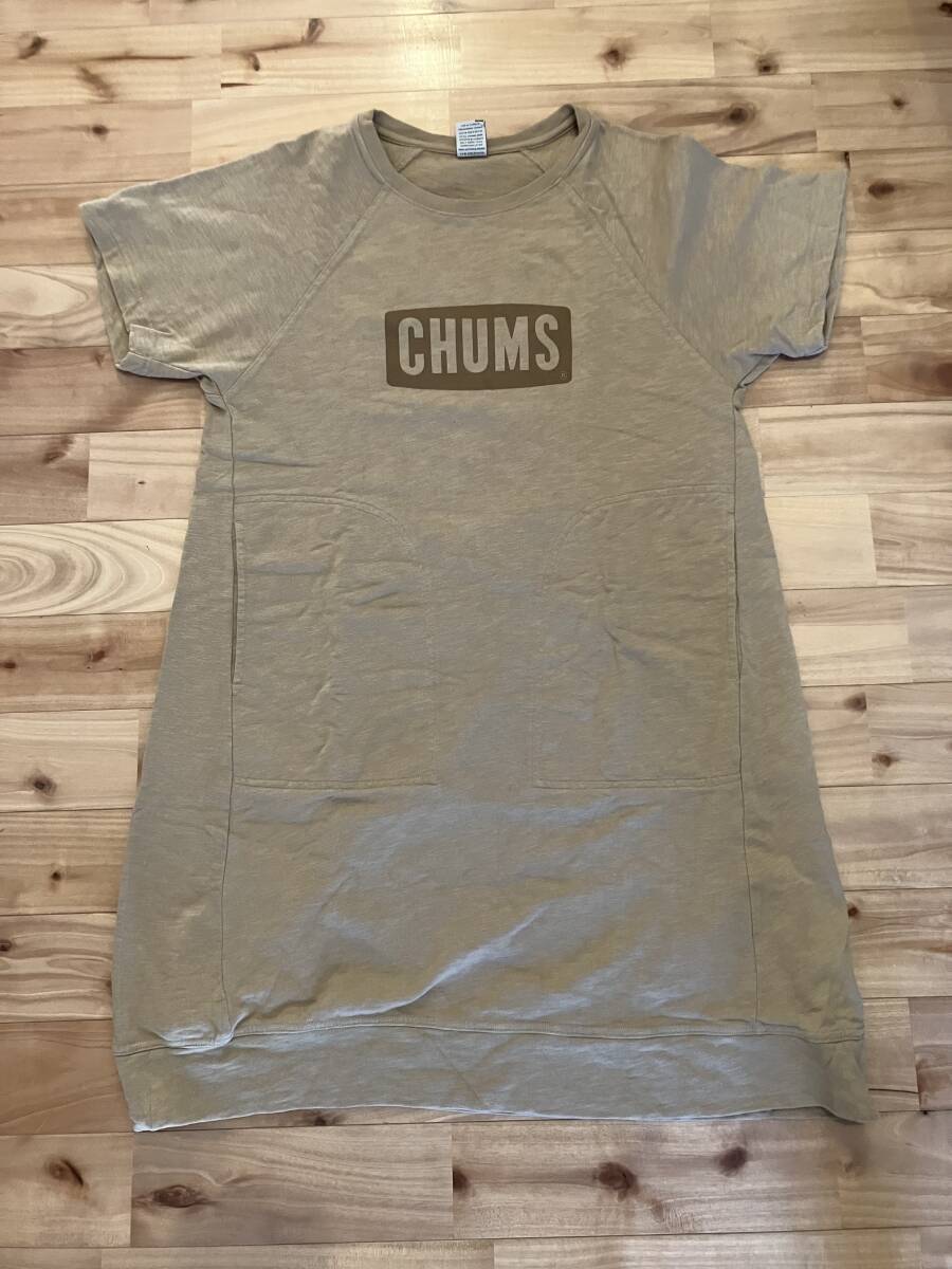 - 送料無料 中古 ワンピース CHUMS カーキ 厚手 コットン 100% レディース M 両サイドポケット付き
