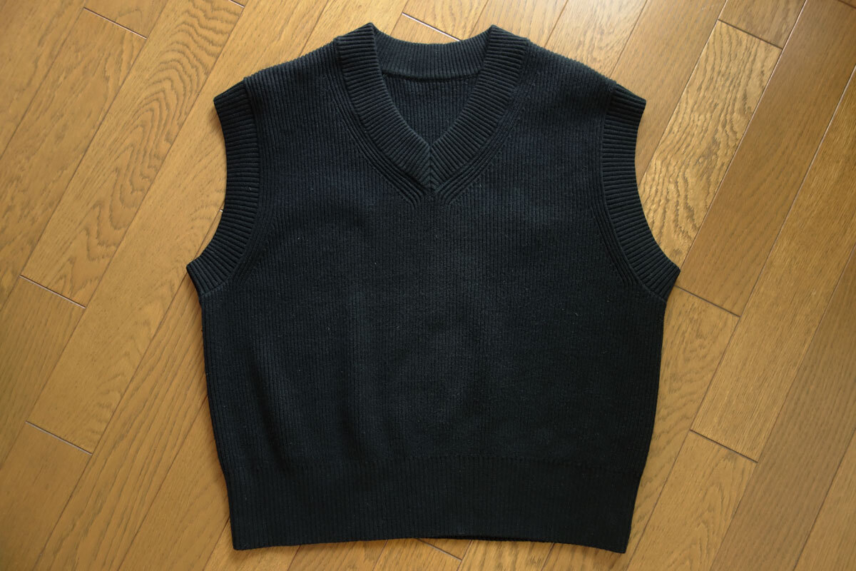 - 無印良品 洗える畦編みショート丈Vネックベスト M 黒