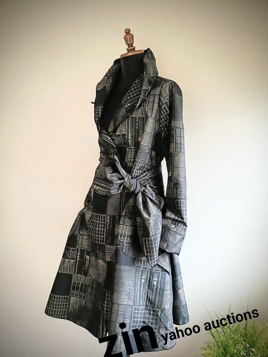 - 正絹紬のコートワンピ 着物リメイクコート ワンピース ジャケット モード
