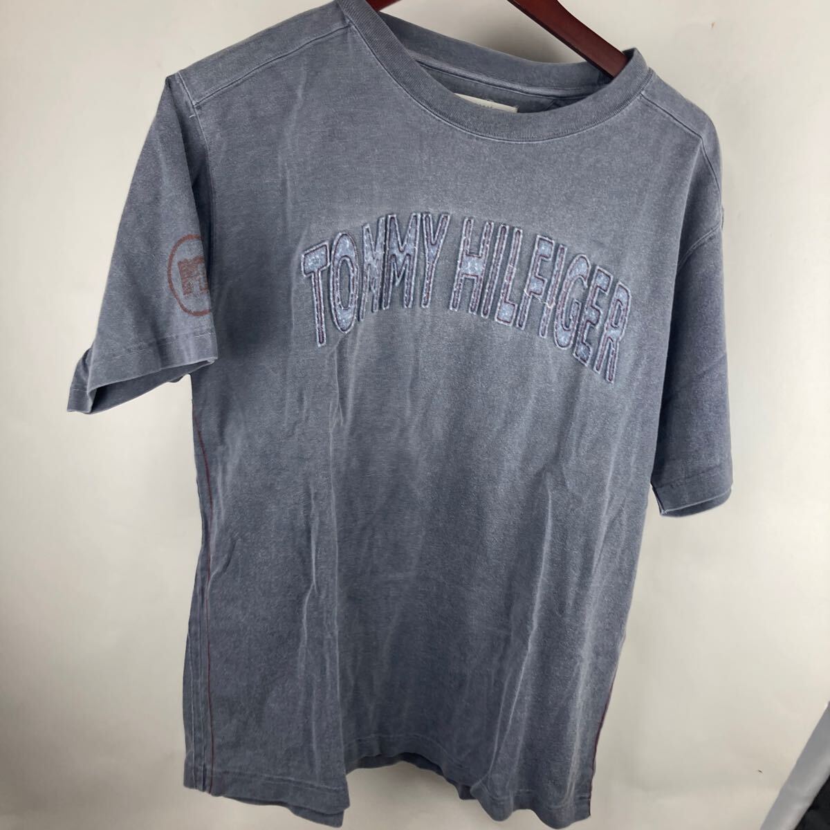 - Tシャツ 半袖Tシャツ 半袖 グレー M トップス プリント アメリカ古着 古着 TOMMY HILFIGER トミーフィルガー メンズ スウェット 灰色