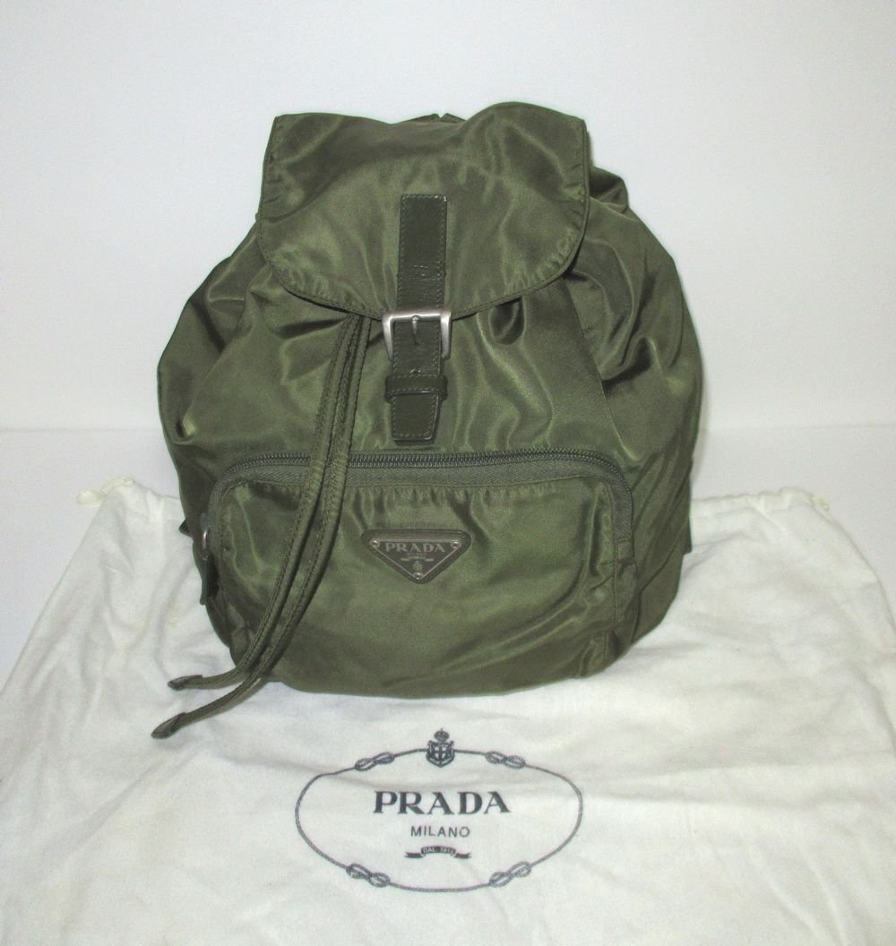 > ♪PRADA(プラダ/イタリア製)三角ロゴプレート/ナイロン/リュック/バックパック/1ポケット/カーキ系/保存袋付き