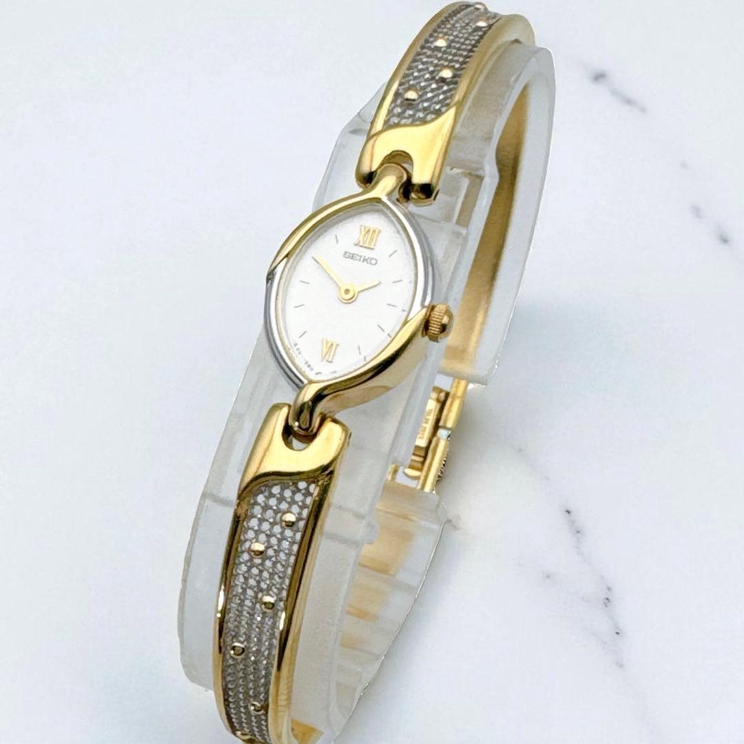 - 稼働 SEIKO セイコー オーバル バングルウォッチ コンビカラー 腕時計 レディースウォッチ