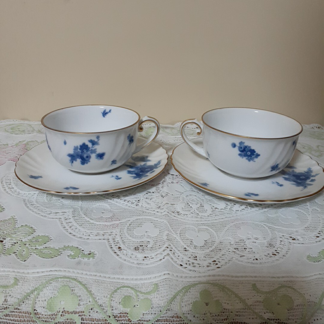 - 【大倉陶園】ブルーフラワー カップ&ソーサー 2客ペアセット 金彩