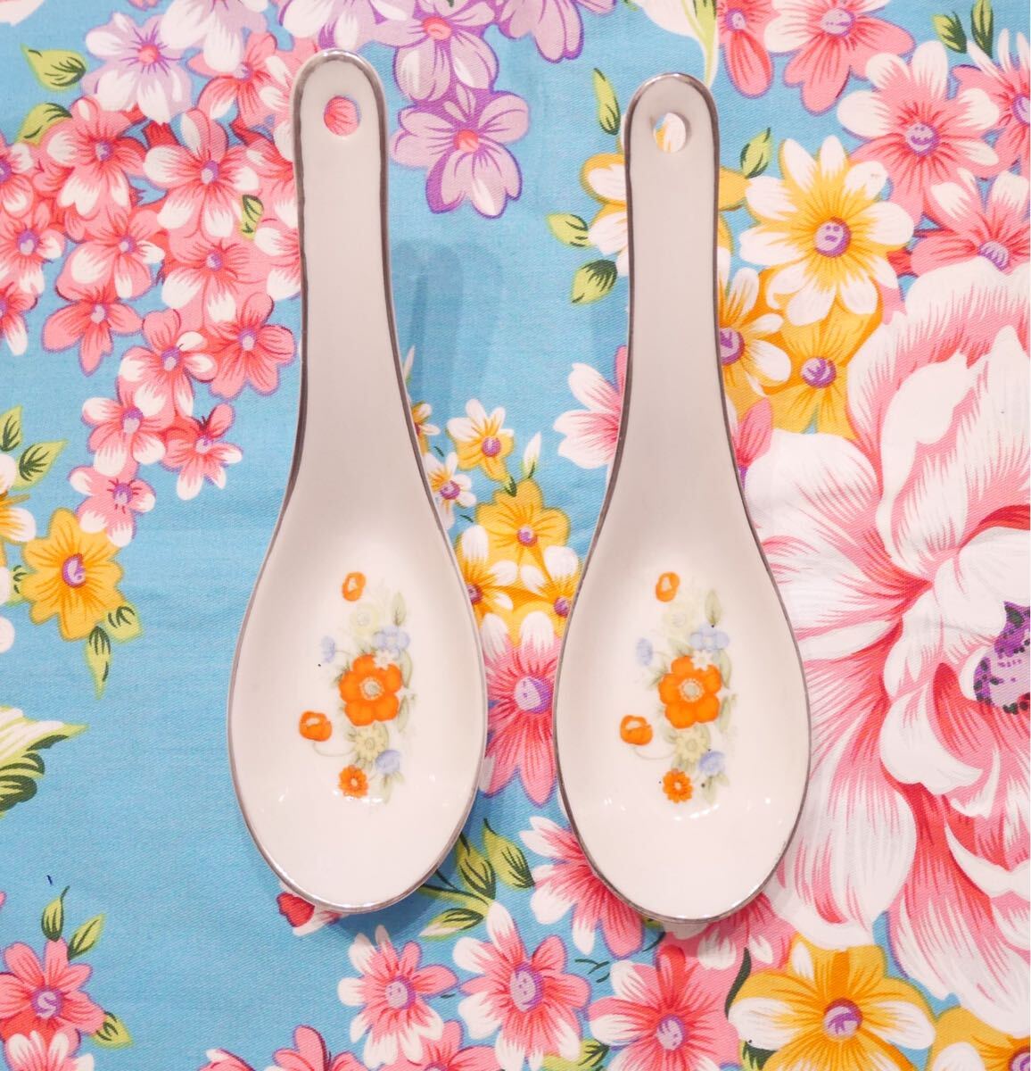 - 【レア品】台湾レトロ♪大同陶器 花柄レンゲ2個セット