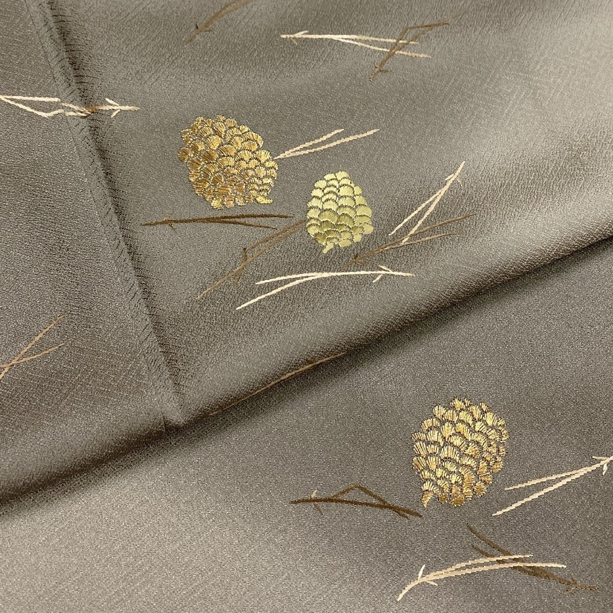 > 着物月花 総刺繍 ぼかし染 松葉 松ぼっくり 訪問着 未使用品 正絹 金糸 一つ紋 縫紋 パールトーン加工 ki6246