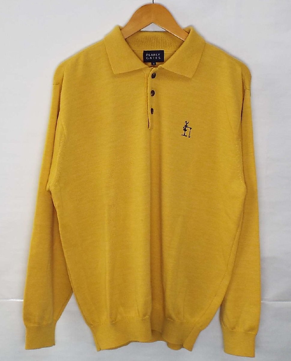 - R214②■PEARLY GATES(パーリーゲイツ)ロング ウール ポロシャツ ワンポイントロゴ 日本製 イエロー サイズ2