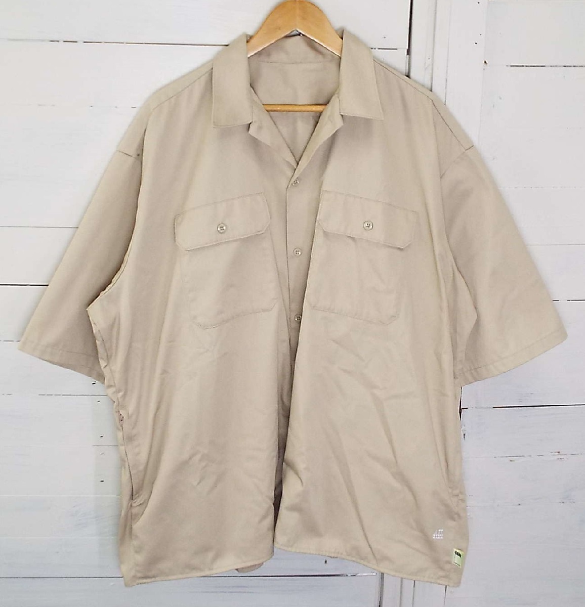- T3216〇SSZ×A.H/BEAMS(エスエスズィー/ビームス)半袖 ワークシャツ ビッグサイズ オーバーシルエット 11-01-1196-139 ベージュ サイズF
