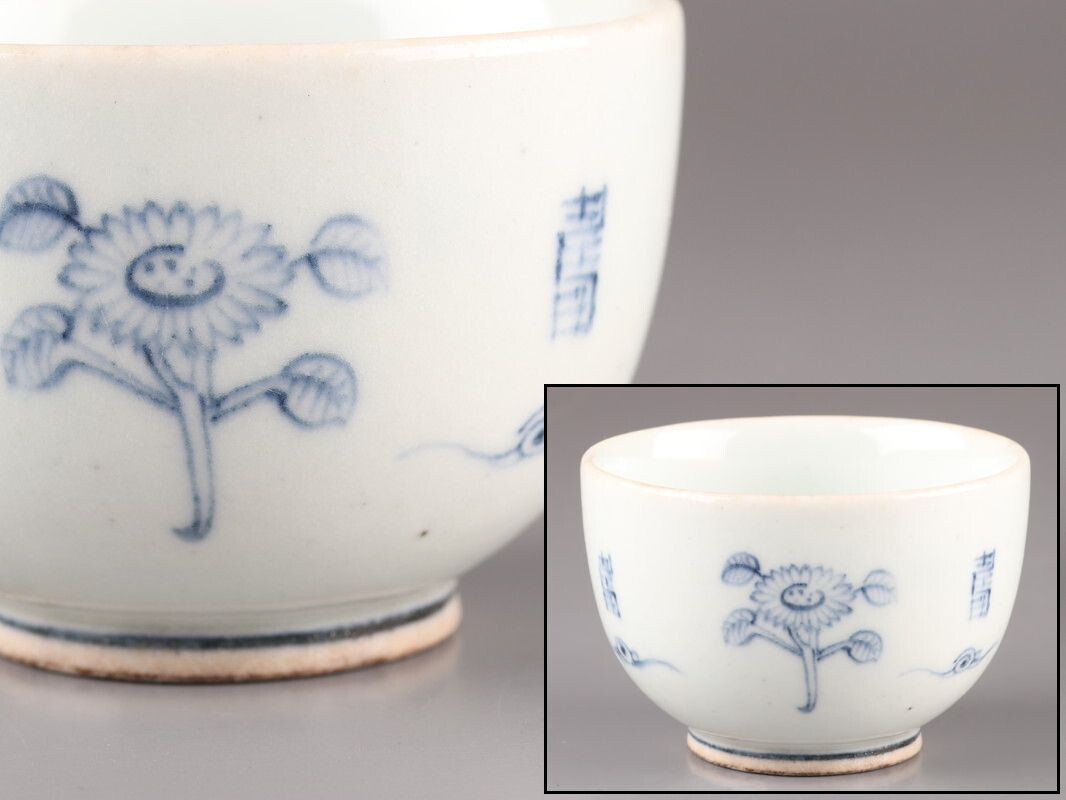 - 古美術 朝鮮古陶磁器 李朝 分院 白磁 染付 盃 時代物 極上品 初だし品 D4628