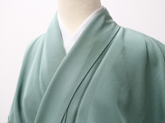 - 《京都一輝堂》【着物】 色無地 一つ紋 作家物 落款入り 身丈約166.5cm 裄丈約64.5cm 24z-3931