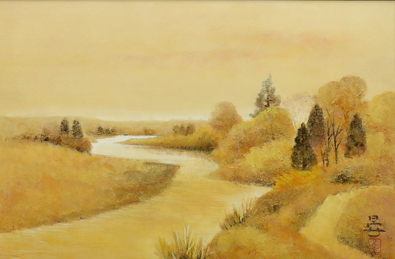 - 11181■【真作】沼田晏宏 「黄昏」 肉筆 池田遥邨師事 京都の人 額装