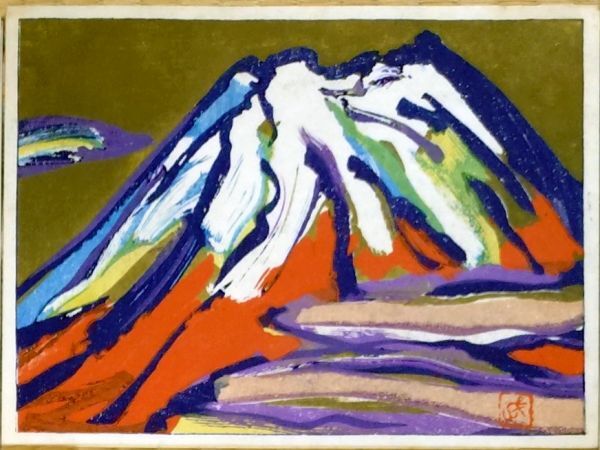 - f25042222〇彩色木版画 ハガキサイズ 富士山 グリーティングカード 錦絵 浮世絵 昭和年代〇和本古書古文書