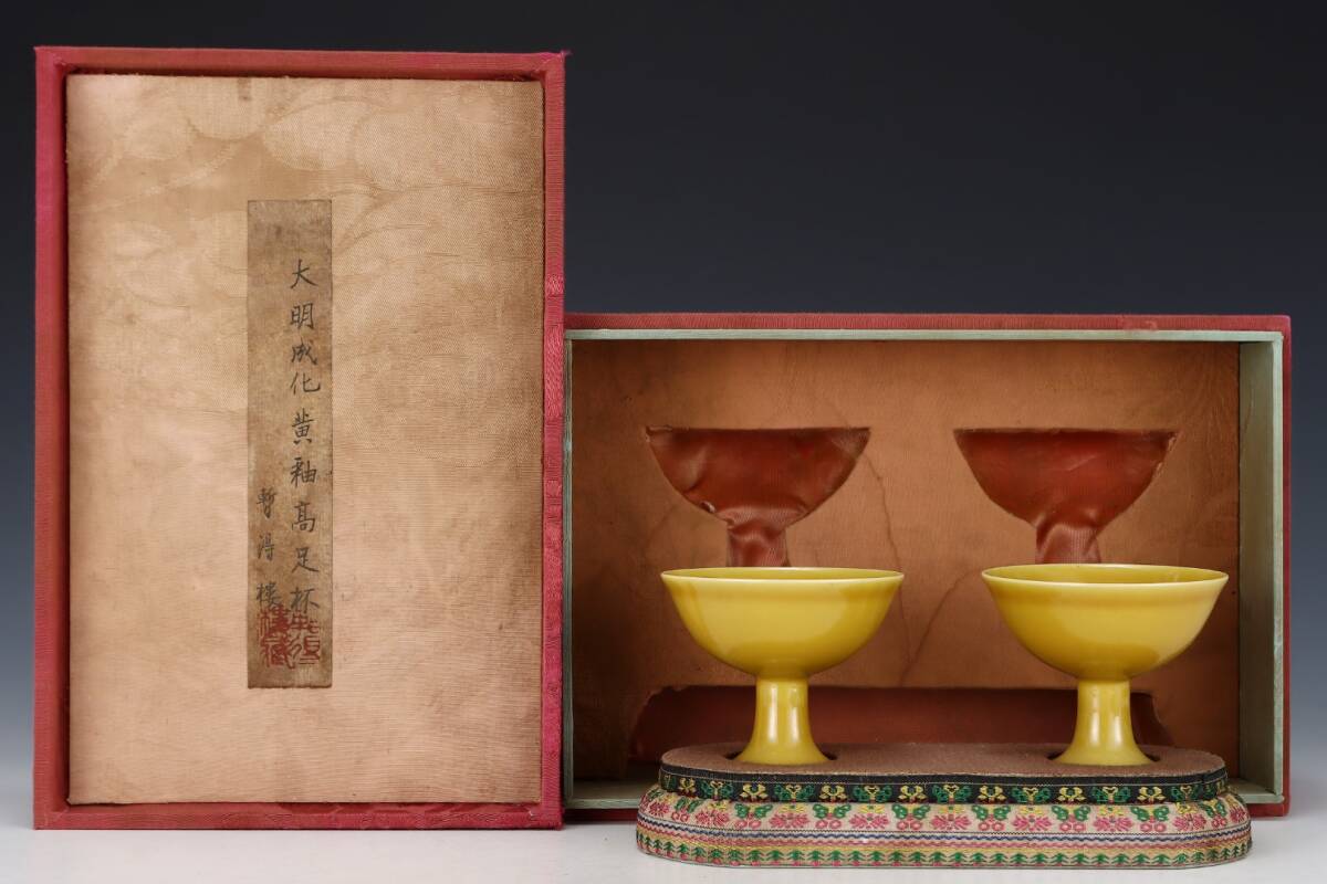 > 館蔵 明代 成化 黄釉 高足杯 古陶瓷品 陶藝 古董品 時代物 賞物 貴重 稀少珍品 中国古美術 古美味 蔵出