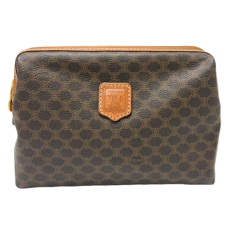 - CELINE セリーヌ ヴィンテージ マカダム柄 トリオンフ ブラウン PVCレザー ポーチ レディース 【中古】 22510K403
