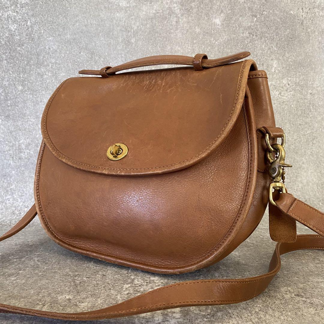 - オールドコーチ ハンドバッグ ショルダー 2way レザー ターンロック 茶色
