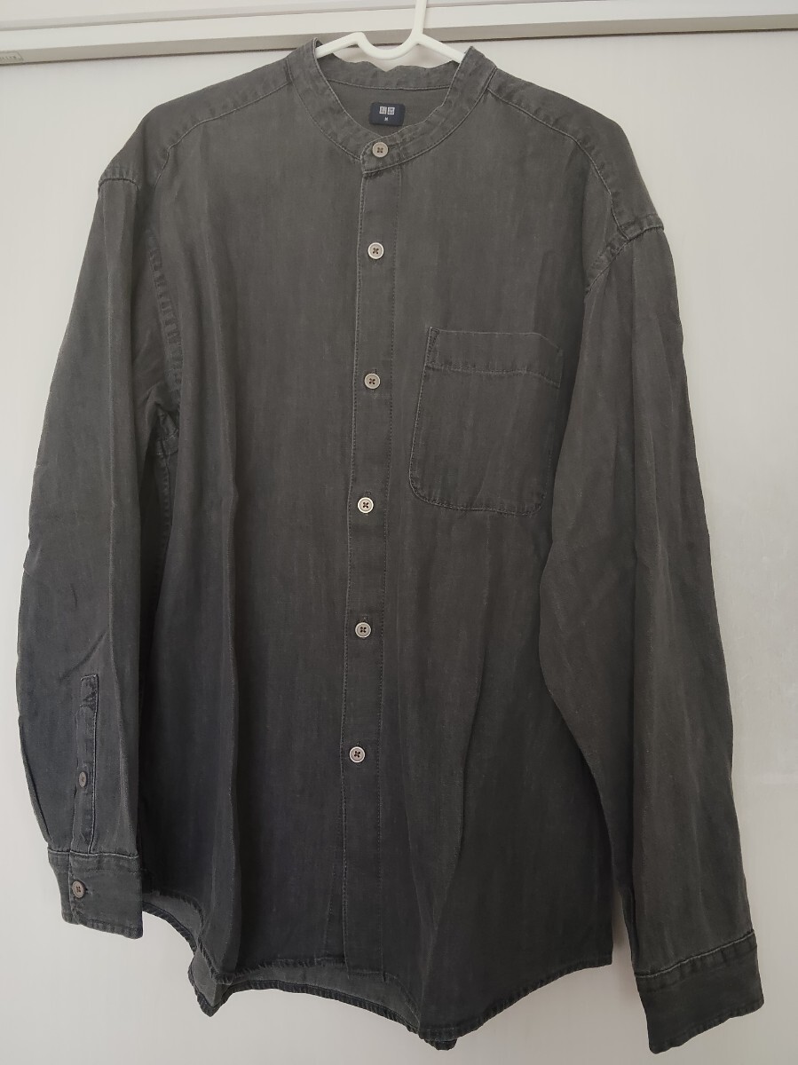 > ユニクロ デニムオーバーサイズ スタンカラー シャツ 長袖 グレイ 綿100% サイズM ¥2,990購入