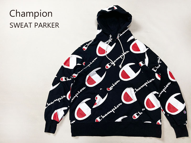 - Champion チャンピオン スウェットパーカー メンズ M ロゴプリント 総柄 フーディー