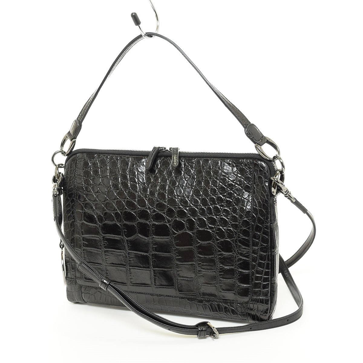 - □565493 BEAUGRAND ボーグラン 3WAYハンドバッグ ショルダーバッグ クラッチバッグ JRA クロコダイル エキゾチックレザー ブラック