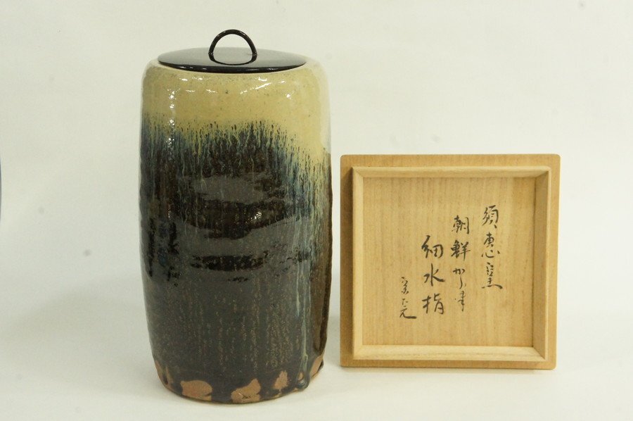 日本伝統工芸展で最高位の文部大臣賞を受賞した名工・唐津焼須恵窯の徳澤守俊作・朝鮮唐津の細水指です。