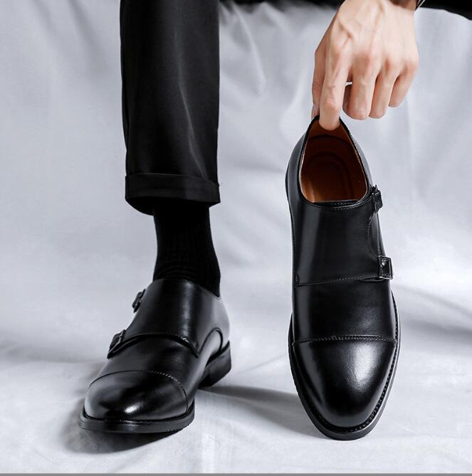 - 新品ダブルモンクストラップ メンズ レザーシューズ 職人手作り ビジネスシューズ 紳士靴 革靴 ブラック24~27cm