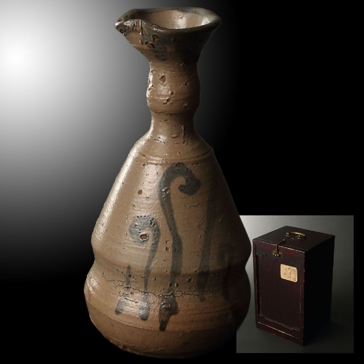 - 【深和】17世紀初頭◆絵唐津銹絵蕨文徳利(和食器 酒器 唐津焼 多久高麗谷窯 内田皿山窯 古唐津 寺沢唐津 唐津徳利 鉄絵 茶道具 桃山古陶)