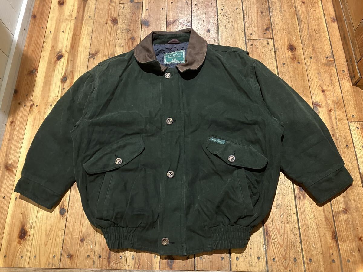 - 80s 90s vintage OLD RIVER メンズM ダック地 緑 ジャケット 中綿 100円スタート 売り切り 古着 レザー襟 ブルゾン アウター