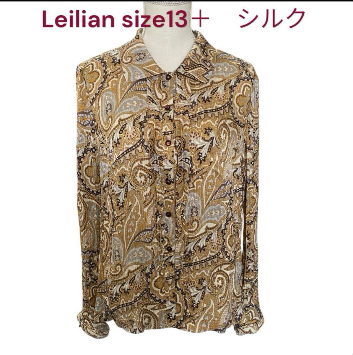 - 極美品 レリアン シルク ペイズリー柄 プリーツ ブラウス シャツ トップス Leilian 13+、13号、XL