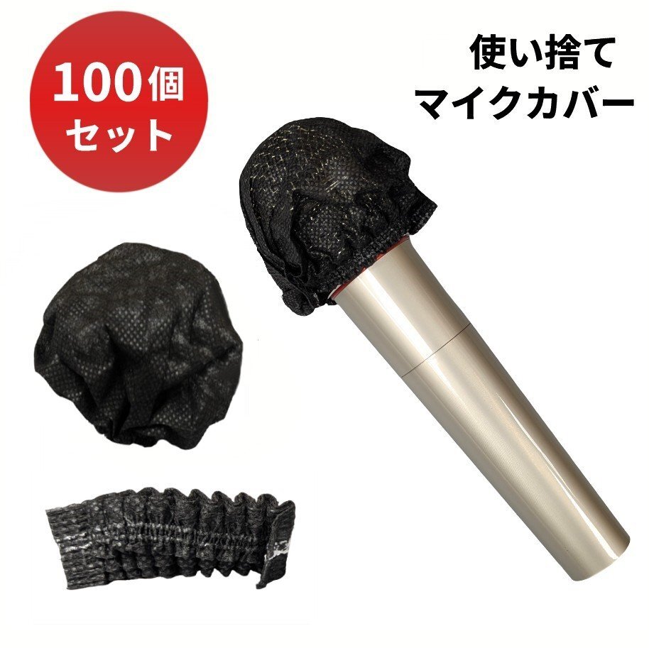 - 【vaps_5】使い捨て マイクカバー 100個 不織布 黒 飛沫 ノイズ 風防 カラオケ マイクガード 衛生 抗菌 業務用 雑音防止 送込