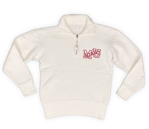 > 50's UNKNOWN ビンテージスウェット ハーフジップ セットインスリーブ コーツ・クラーク片爪ジップ MIAMI フロッキー 白 [ta-1561]